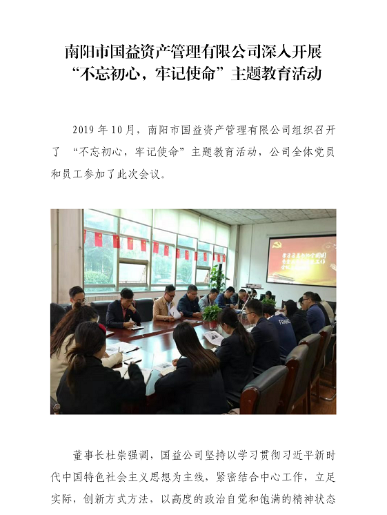 南陽市國益資產管理有限公司深入開展 “不忘初心,牢記使命”主題教育活動